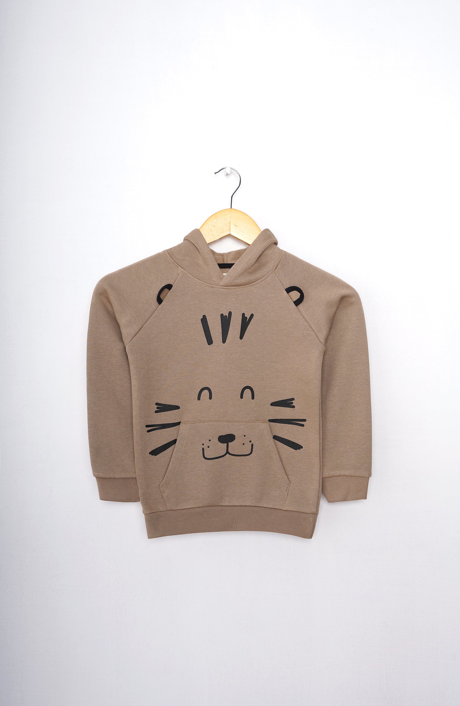 "Lion Face Suit With Reglan Sleeves & 3D Ears Details In Soft Fleece Fabric"