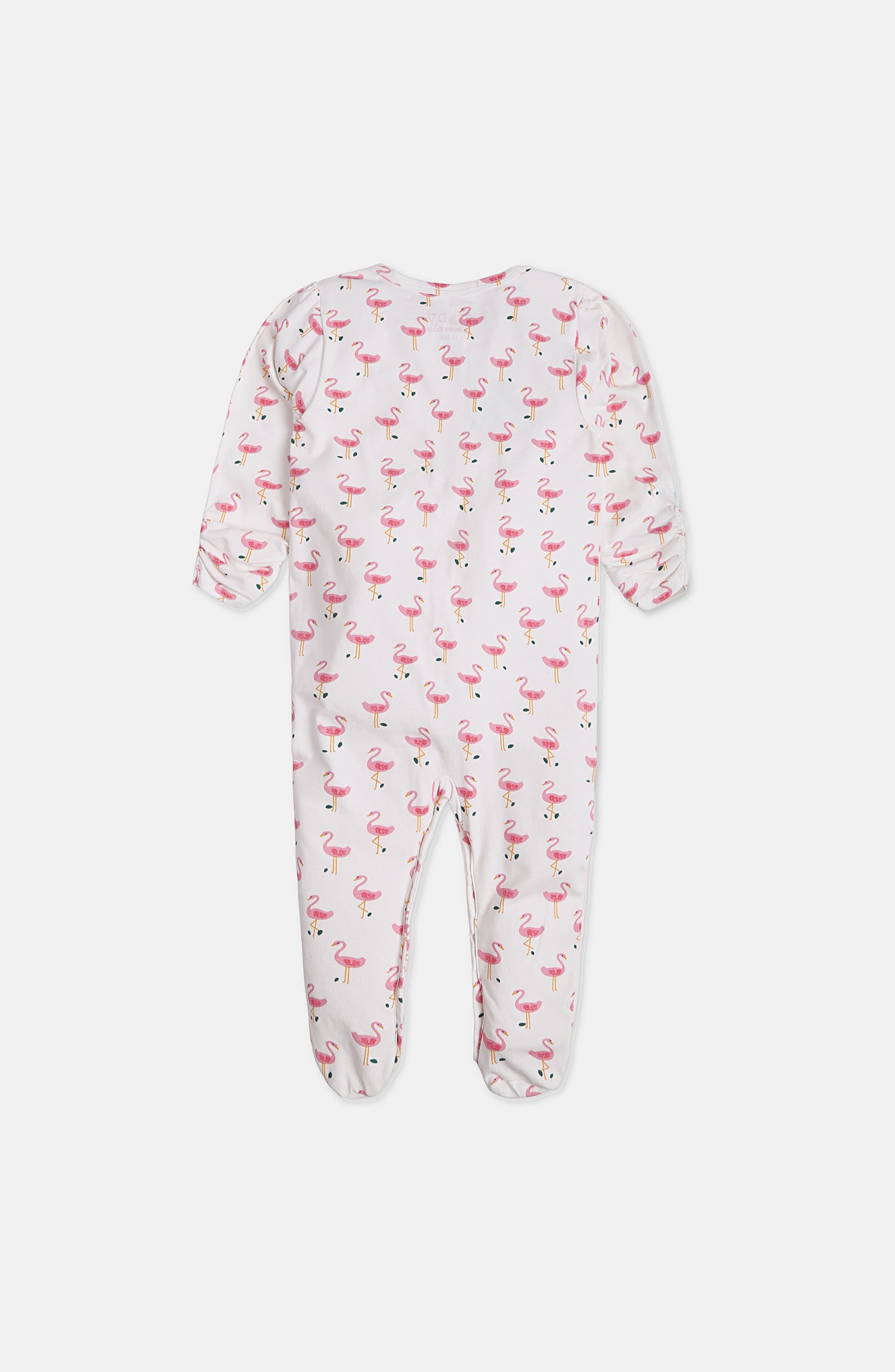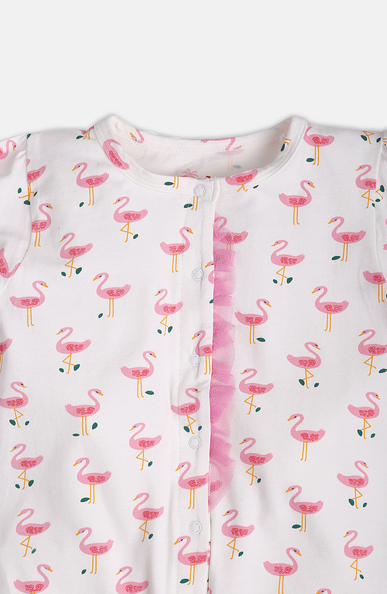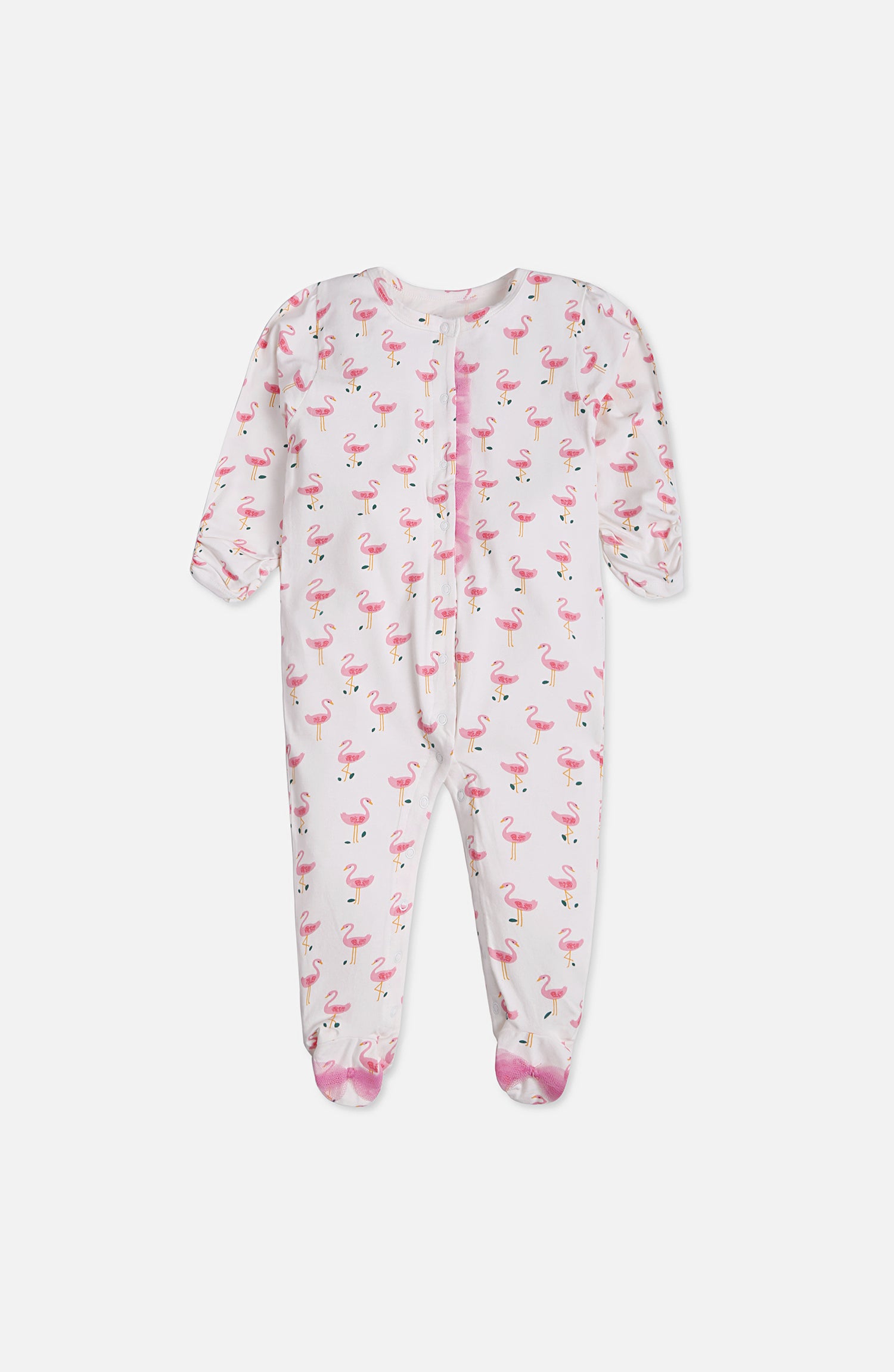 Girls Full Sleeves Flamingo Printbodysuit Comfy All In One Outfitt 100% Cotton Enclosed Feet With Toe Safe Design Toe Safe Prevent Any Thread S From Wrapping Around Tiny Toes Flamingo Print Nickle Free Proper Fastening To Prevent Skin Irritation