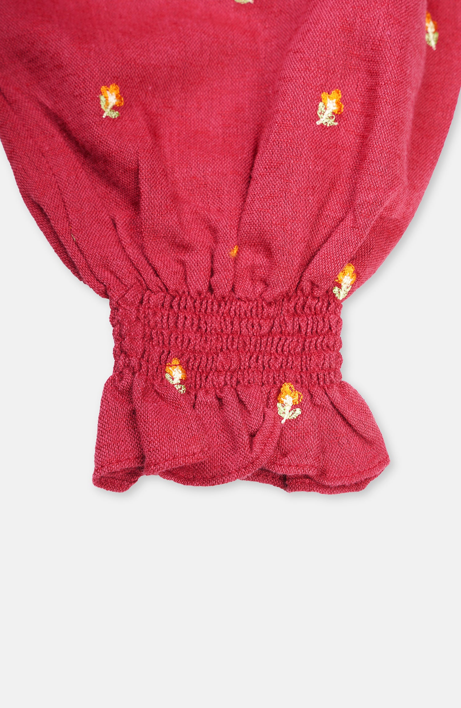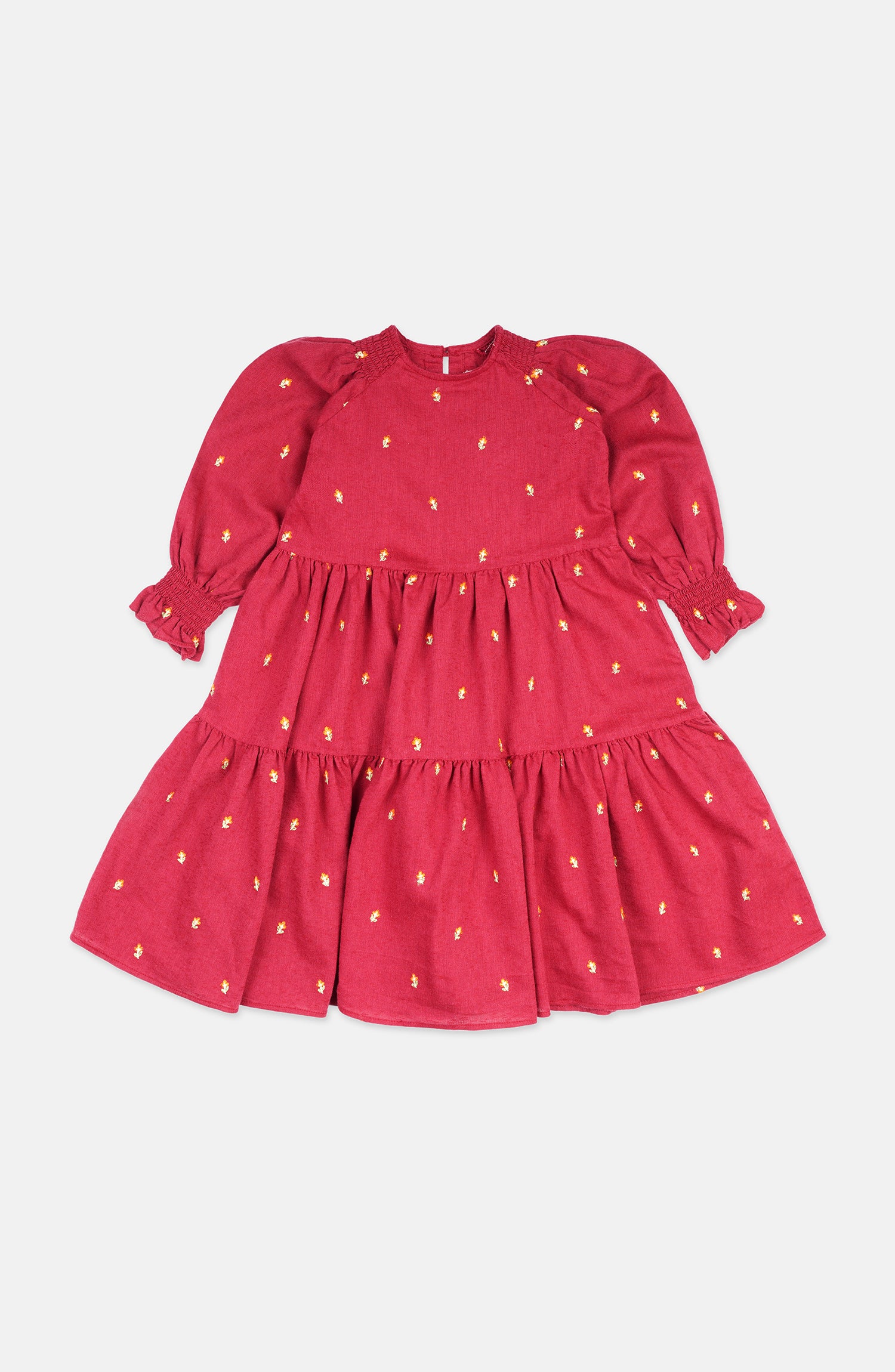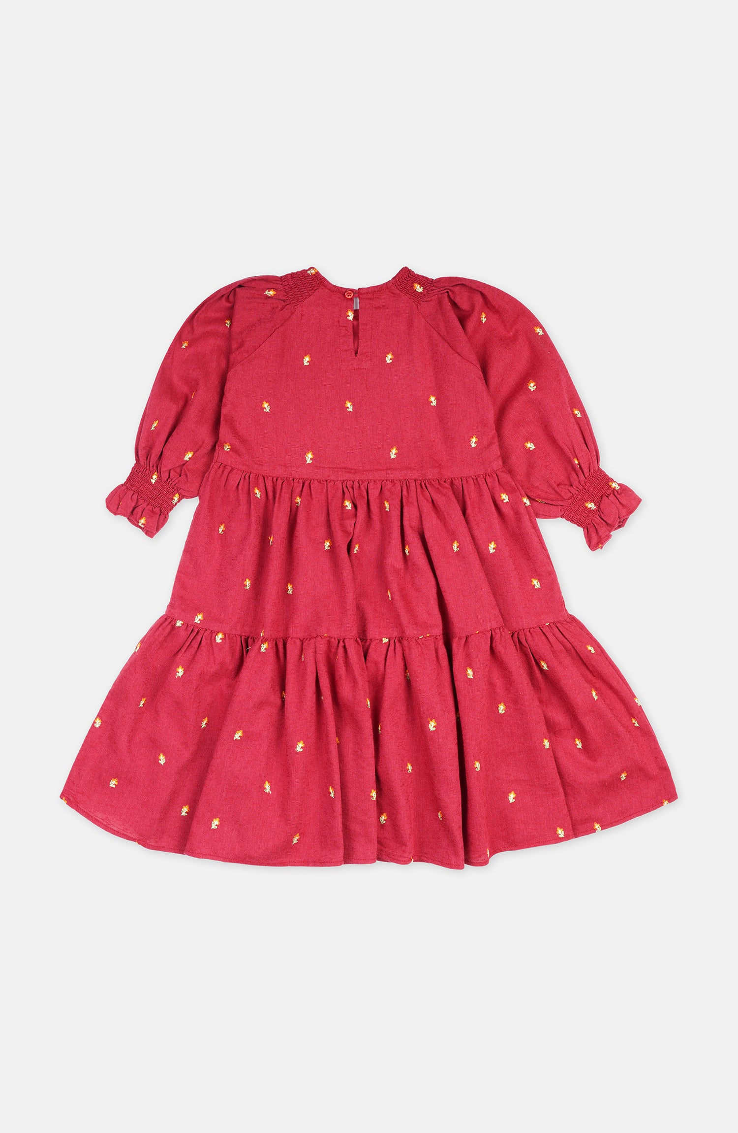 "Infant Girl Dress In Embroided Karandi Fabric"