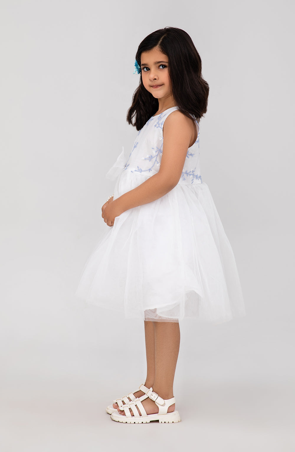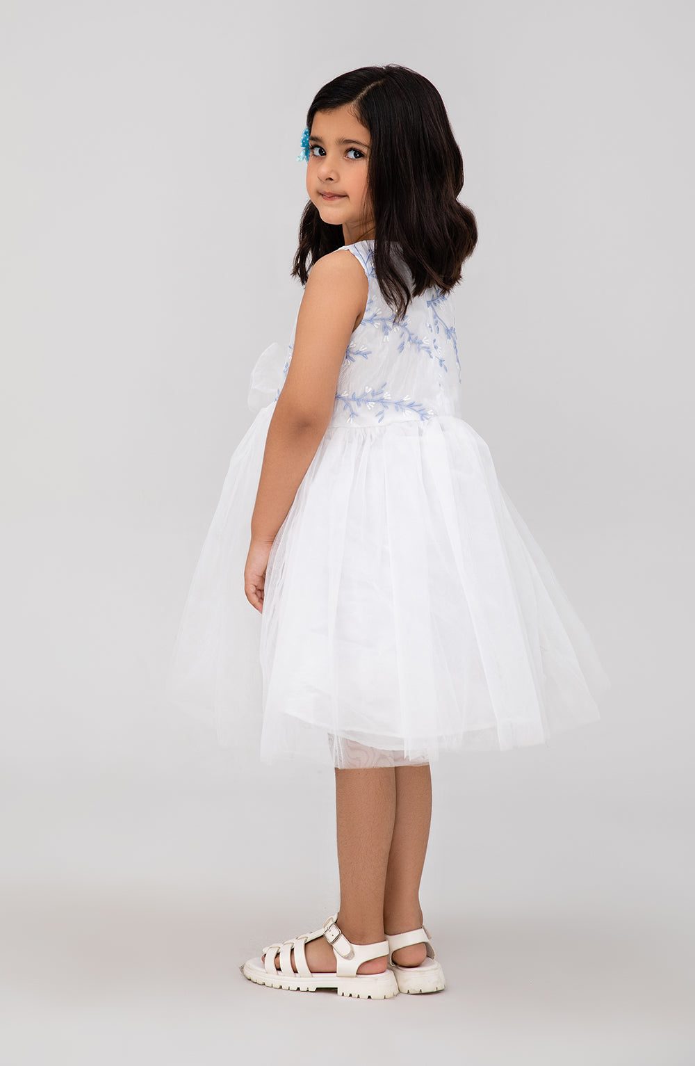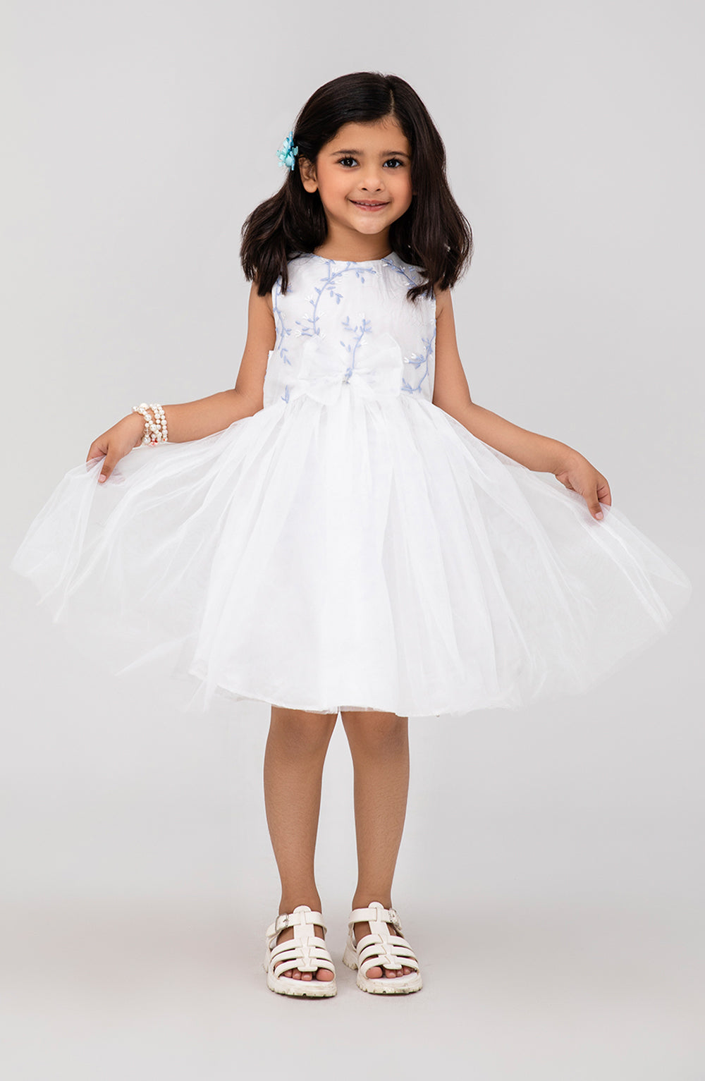 The Embroidered White Dress for infant girls is a timeless piece crafted for elegance and charm. Made from a blend of cotton silk, with delicate sequin accents and layers of soft net, it offers both comfort and sophistication. The regular fit allows for ease of movement, while the intricate embroidery adds a graceful touch. Perfect for formal events, family gatherings, or special celebrations, this white dress is a beautiful choice for your little one.