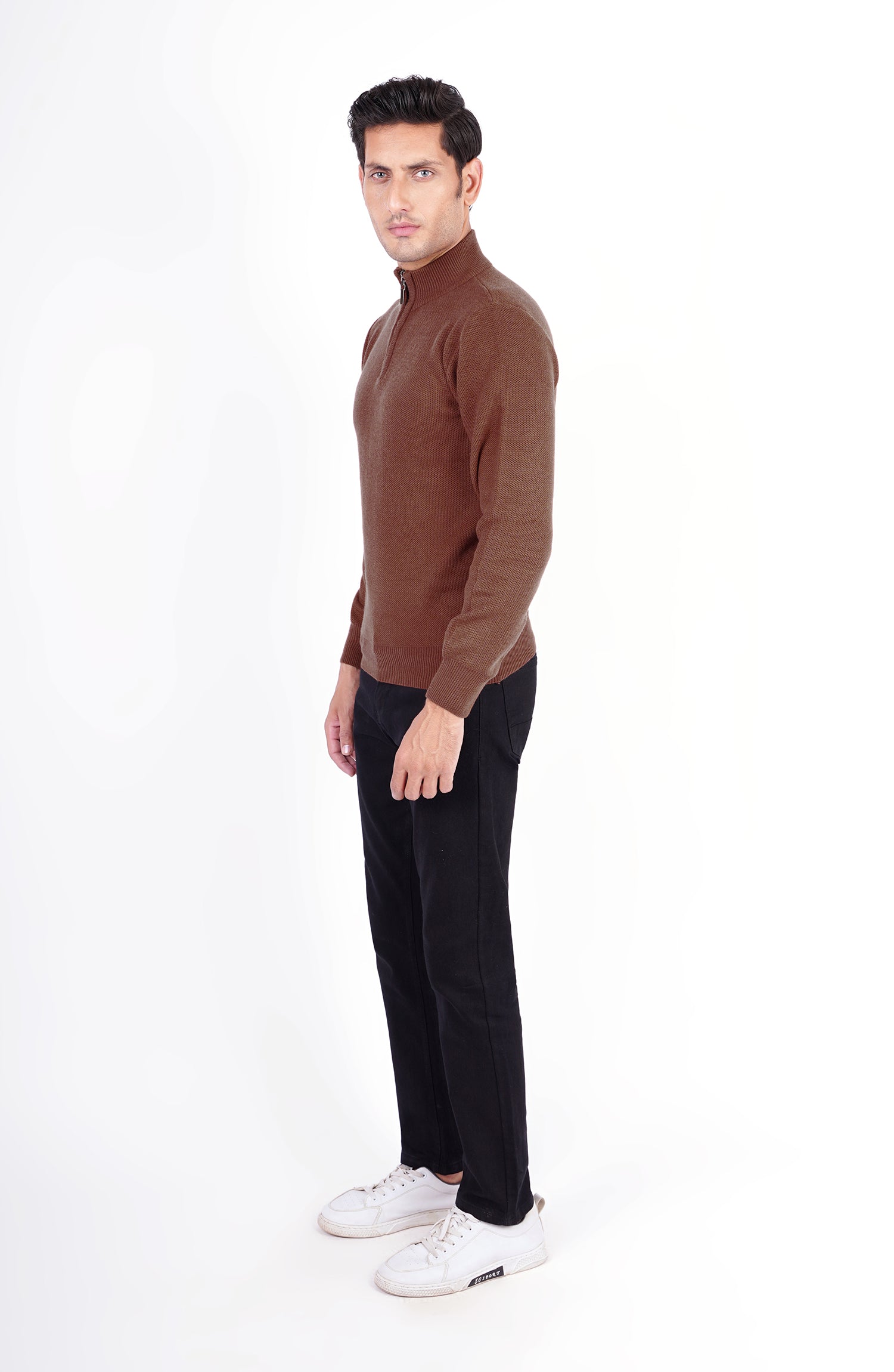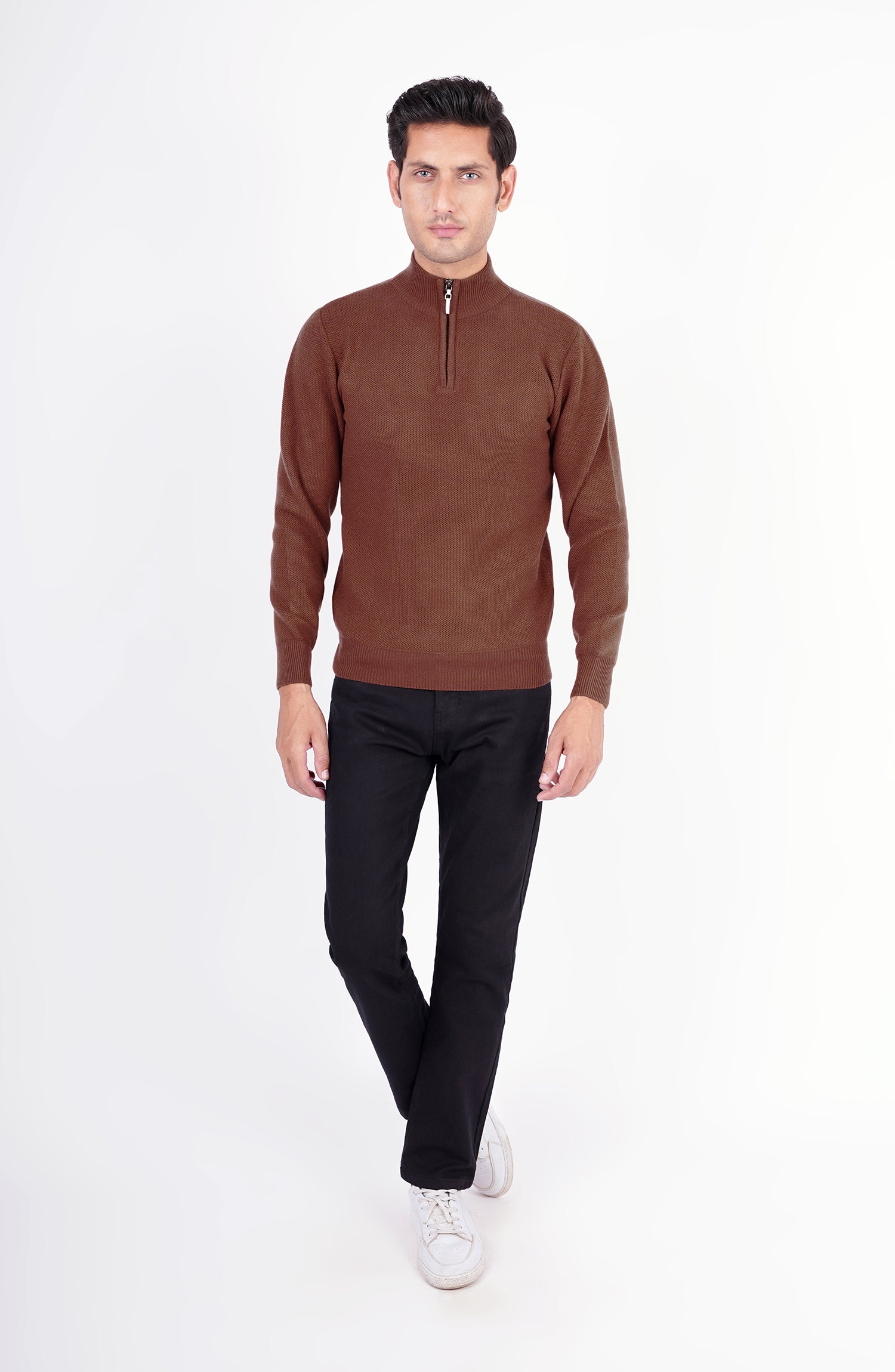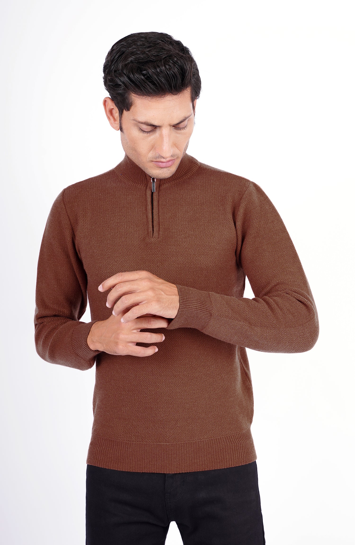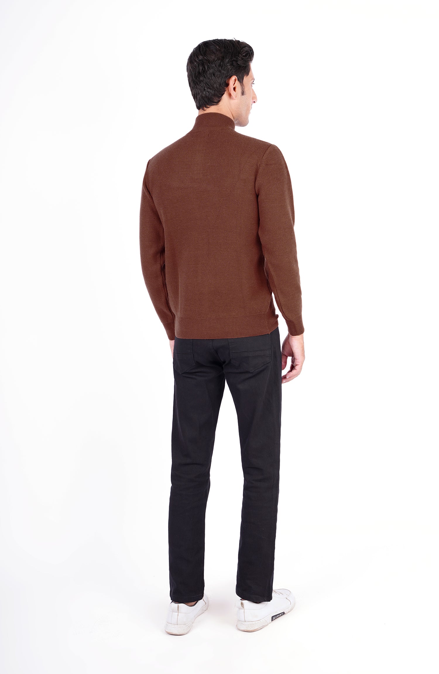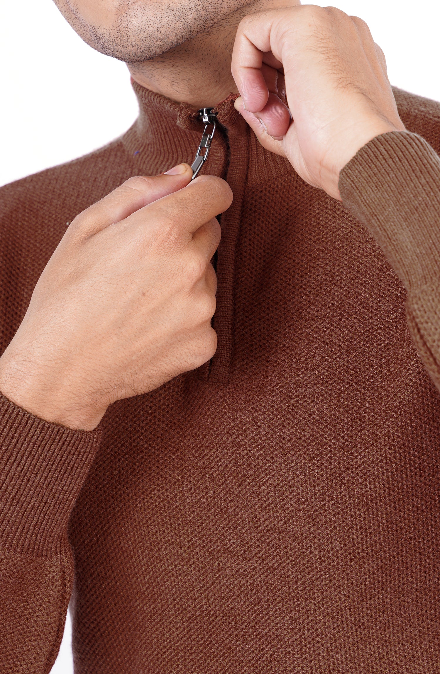 SKU: MS607423-HALF WAY ZIP OPEN JUMPER-BROWN-XL