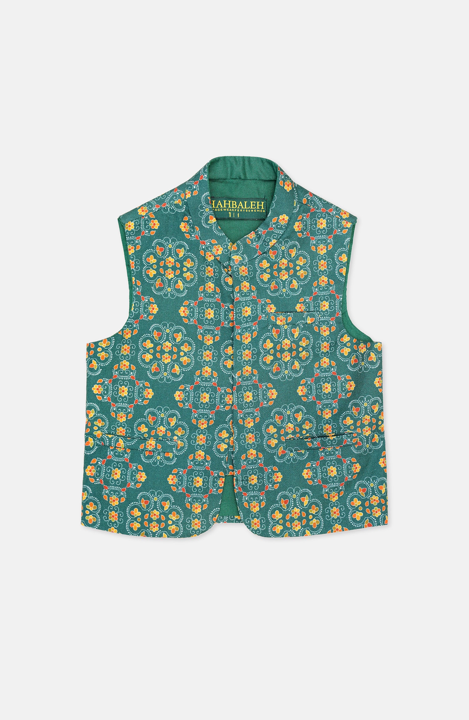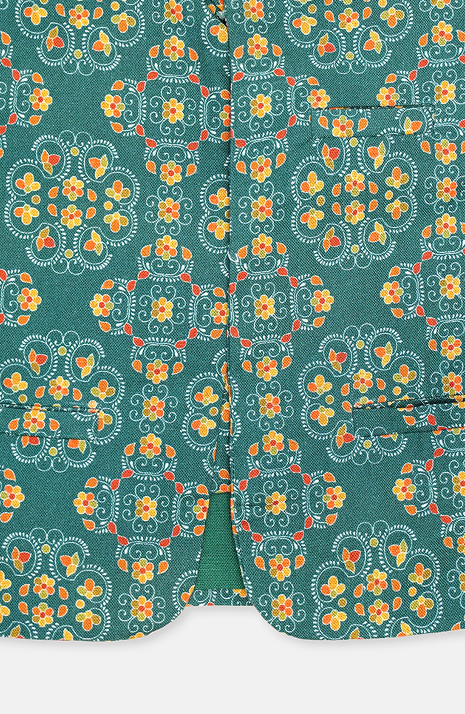 3Pc Infant Suit Slub Khaddar 21X21 Kurta,Shalwar Green Printed Waistcoat