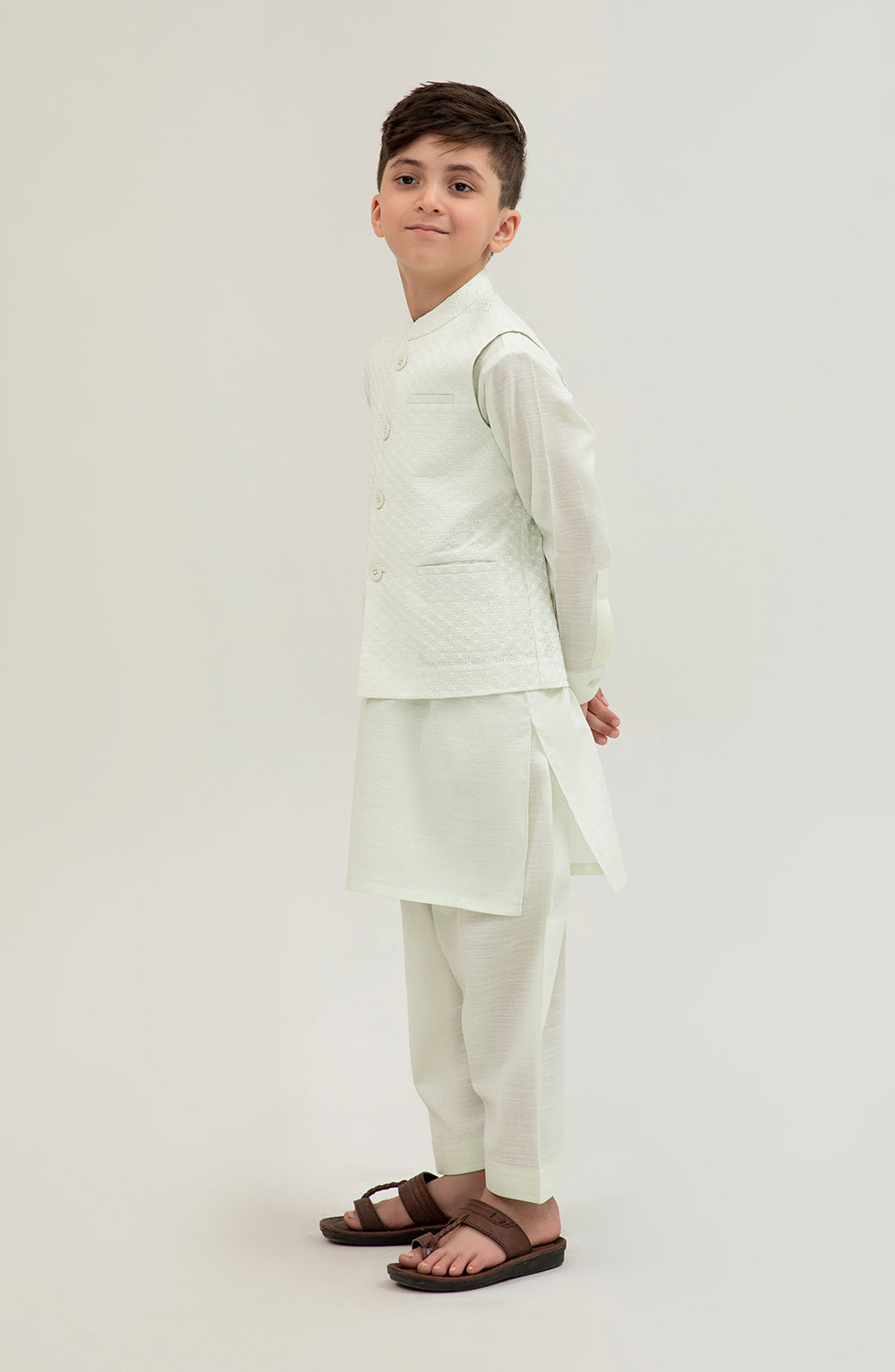 Embroidered Waistcoat 3PC – Apple Green (Infants)