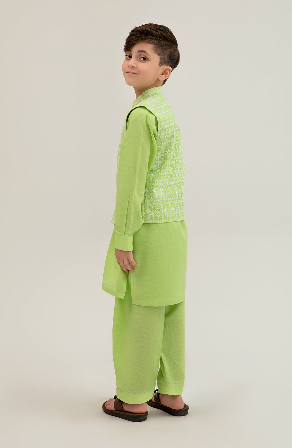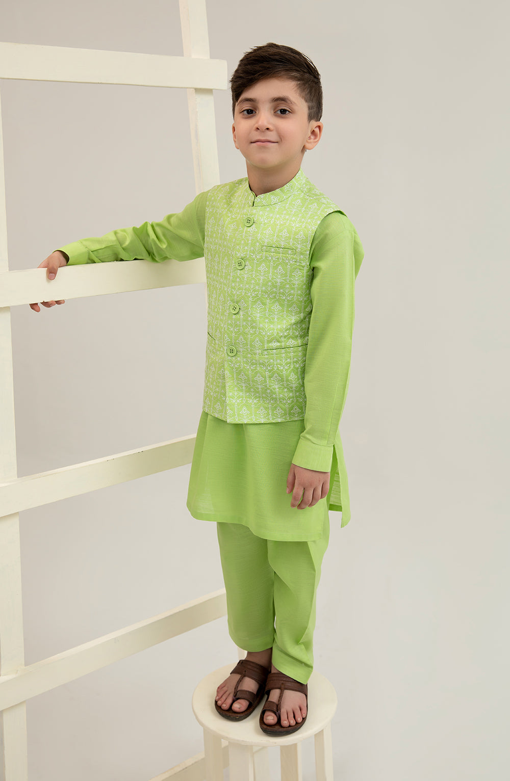 This Green Shahbaleh 3-piece infant suit combines style and comfort. Made from soft Slub Khaddar (40x30), it’s gentle on your little one’s skin while offering a trendy, traditional look. Ideal for casual events, family gatherings, or festive occasions, this outfit will keep your infant looking sharp and feeling comfortable.