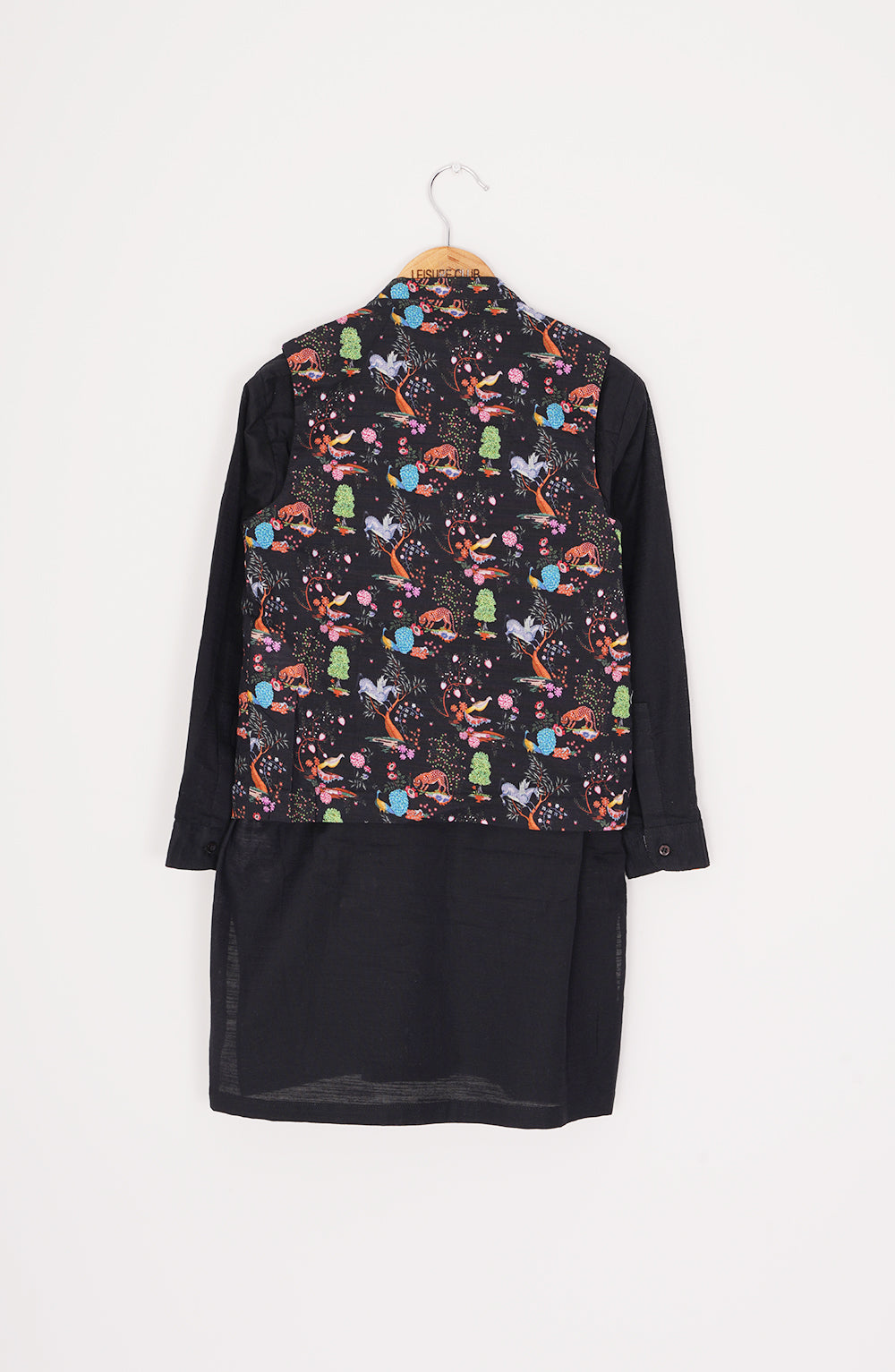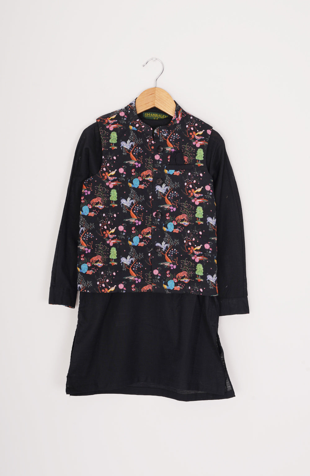 Shahbaleh Printed Waistcoat 3-Piece Suit – Black (Infants)