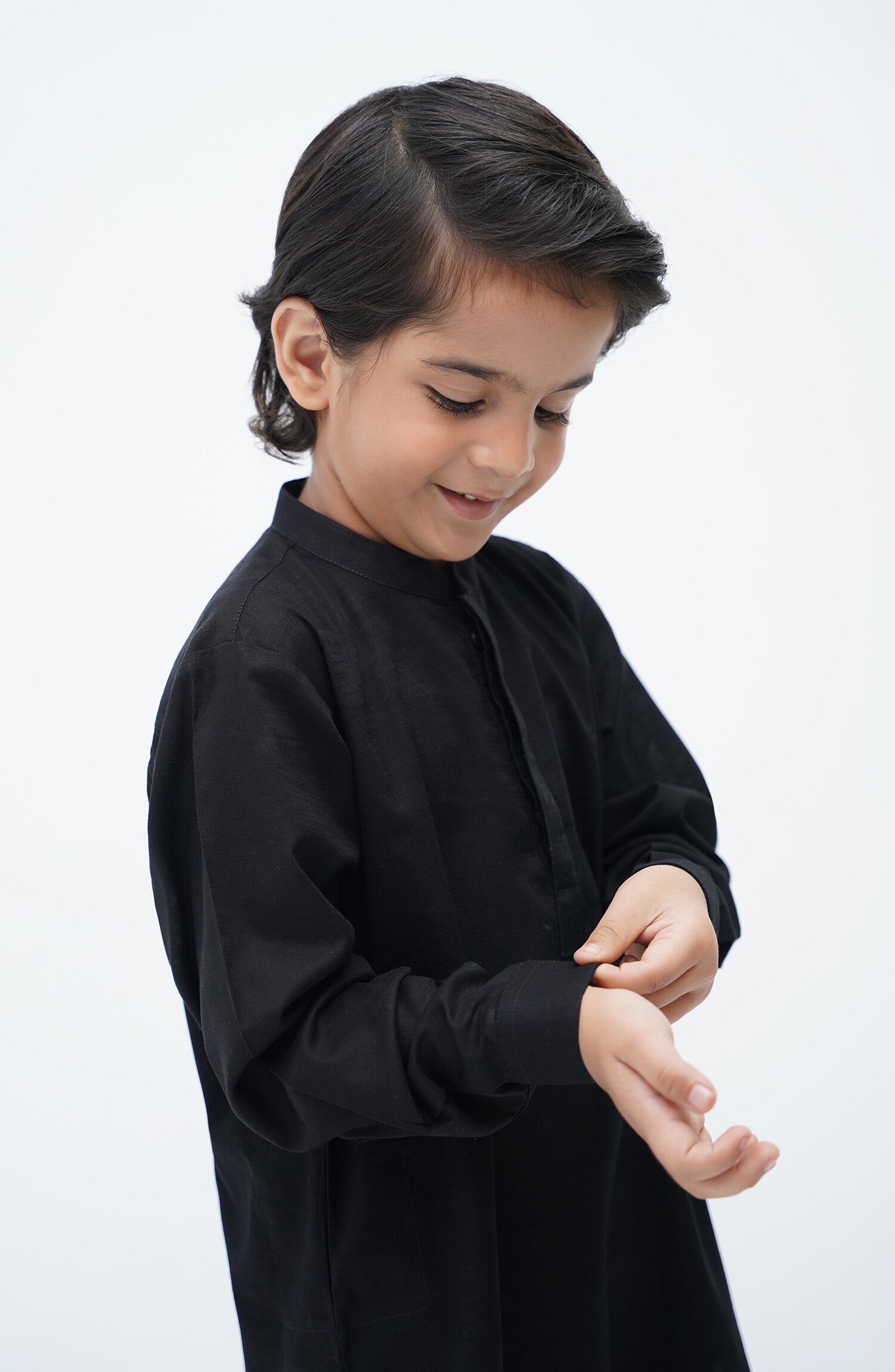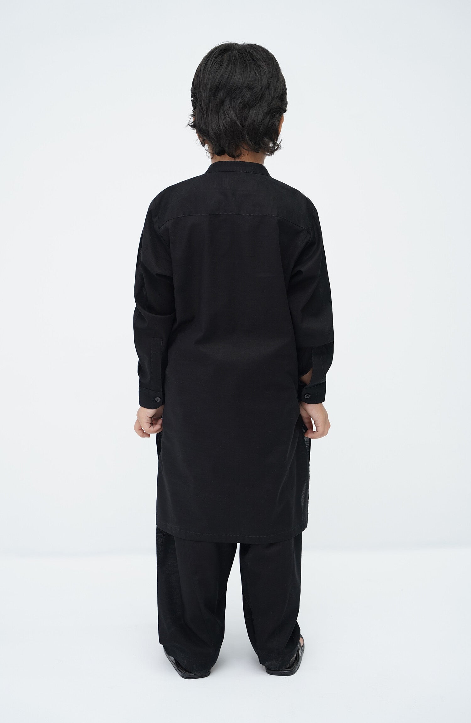 3Pcs Infant Suit Khaddar 21X21 Black Kurta,Shalwar Printed .Waistcoat
